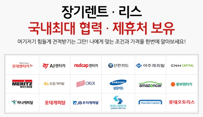 장기렌트 & 리스 국내최대 협력, 제휴처 보유!
