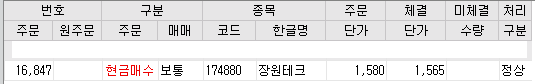 01. 장원테크(174880) 1,580원 매수 완료