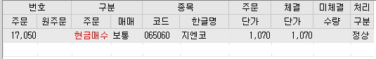 01. 지엔코(065060) 1,070원 매수 완료