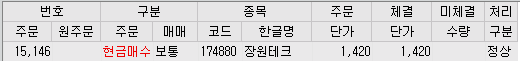 01. 장원테크(174880) 1,420원 2차 매수 완료